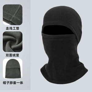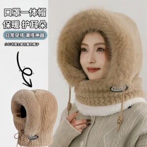 冬季毛绒骑车围脖一体口罩护耳防风保暖骑电动车套头帽加厚帽子女