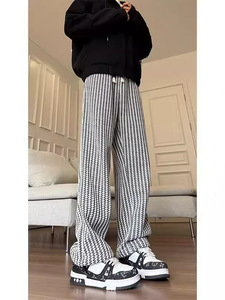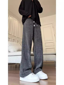 美式雪尼尔条纹裤子男款cleanfit秋季抽绳松紧腰休闲裤宽松直筒潮
