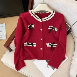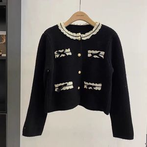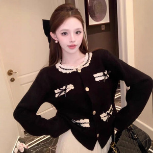 小香风蕾丝花边毛衣外套女短款秋冬修身软糯洋气漂亮外搭针织开衫