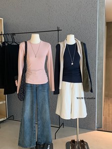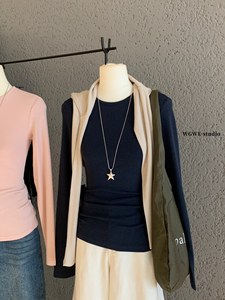 WGWE7398十三行女装2025秋装新款收腰显瘦内搭打底衫长袖正肩上衣