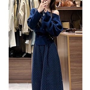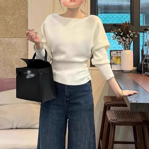 掐腰设计感针织衫女春秋季外穿韩系高JI感上衣收腰毛衣内搭打底衫