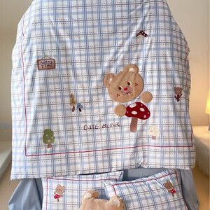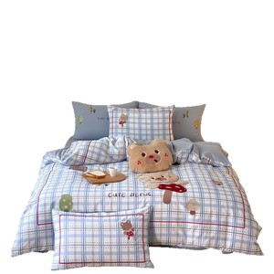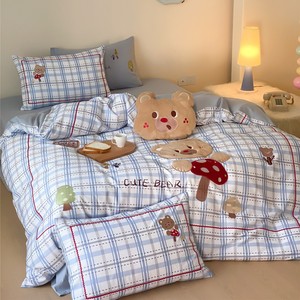 可爱卡通蘑菇小熊刺绣保暖单双人床品秋冬季全棉磨毛四件套家纺