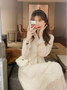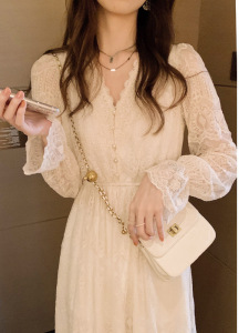 2025年秋装新款高级感法式小众别致气质女神范收腰蕾丝连衣裙子女