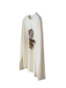 暖糯0压感 趣味老鼠棉质斑驳印花舒适圆领长袖T恤打底上衣