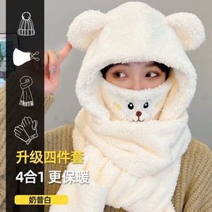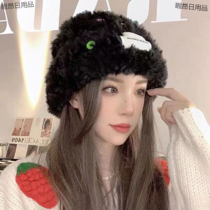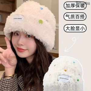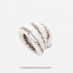 新款针织帽子女冬季毛线条纹显脸小毛绒保暖加厚大头围护耳冬帽