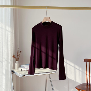 实力工厂莱赛尔天丝醋酸羊毛打底衫女半高领正肩长袖T恤修身内搭