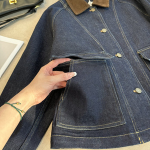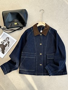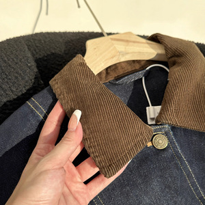 小禾巴恩风休闲宽松灯芯绒翻领撞色重磅牛仔短外套,9457