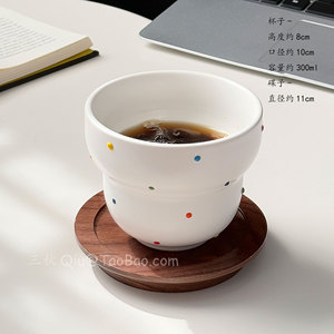 哑光白浮雕糖豆手握杯+胡桃木垫