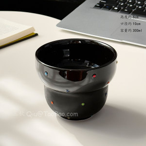 复古黑浮雕糖豆手握杯+胡桃木垫