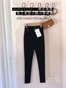 MANUVIVI摩女薇薇竖三金扣小脚小黑裤秋冬弹力显瘦铅笔裤紧身裤女