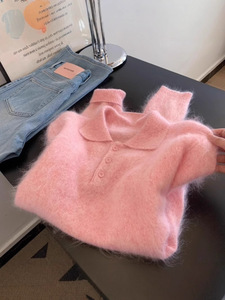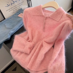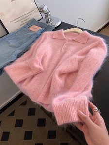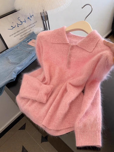自留爆款推荐~高级感超好看海马毛polo领毛衣女秋冬针织衫上衣