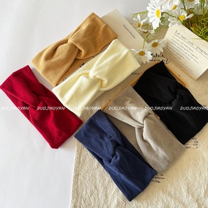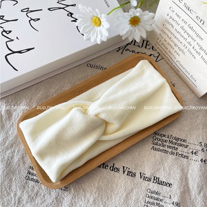 网红新款秋冬时尚纯色奥粒绒发带复古交叉防寒保暖头带发饰现货女