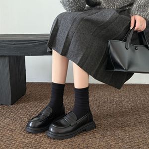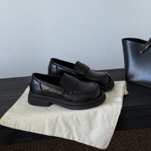 MARCO&JOYCE百搭复古单鞋厚底乐福鞋女秋季新款一脚蹬英伦风皮鞋