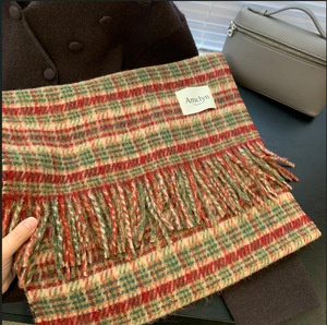 英伦百搭羊毛混纺格子围巾女冬季红绿条纹外搭披肩高级感保暖围脖