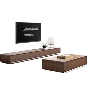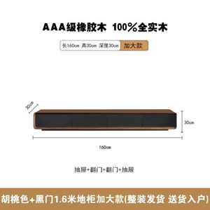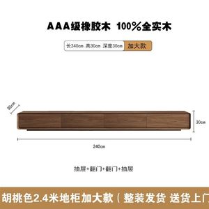 全实木电视柜中古风极简风地柜胡桃色小户型客厅窄款落地整装地台