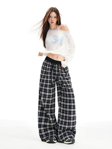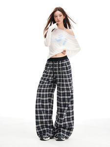 橙绢女装#美式抽绳高腰宽松格子阔腿裤秋冬松弛感慵懒百搭休闲裤
