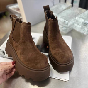 欧货真皮厚底烟筒靴女2025秋季新款大头靴子松糕短靴复古切尔西靴