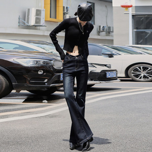 美式辣妹低腰微喇牛仔裤女春秋新款v型提臀弹力修身显瘦喇叭裤潮