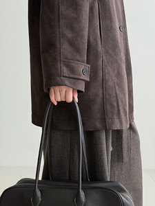 NS经典复古韩系麂皮翻领宽松中长款夹克女秋季新款单排扣外套8527