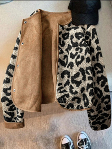 豹纹皮毛一体短外套女秋冬2025年宽松显瘦休闲仿皮草豹纹外套上衣