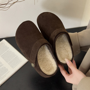 两穿包头勃肯鞋半拖鞋女2025年冬新款增高懒人一脚蹬厚底博肯单鞋