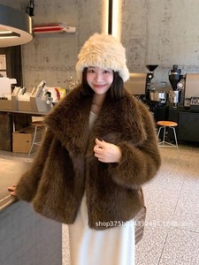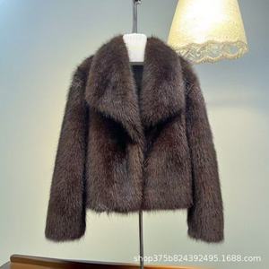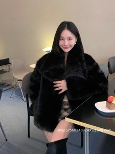 跨境亚马逊秋冬短款人造皮毛外套女狐狸毛皮草外套外贸爆款