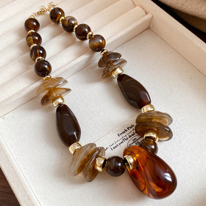 不规则晕染圆形吊坠项链美拉德复古时尚气质锁骨链轻奢高级感项饰