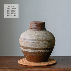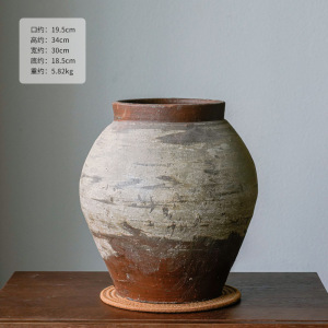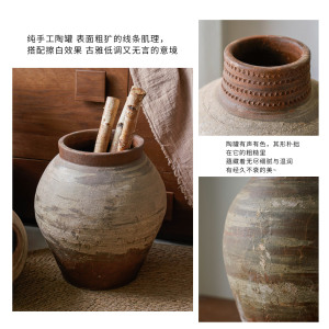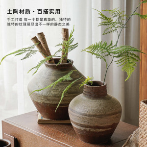 复古粗陶罐花瓶大号装饰摆件酒店民宿造景侘寂风仿陶瓷粗陶土花盆