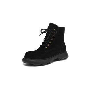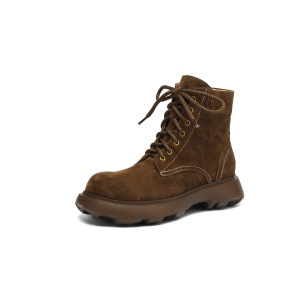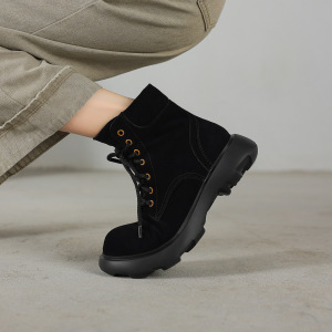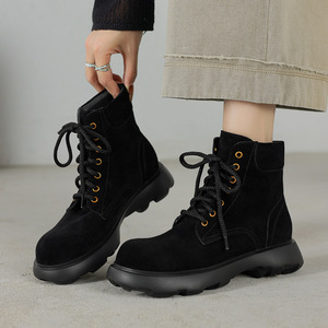 四季可穿敲百搭马丁靴2025厚底粗中跟牛反绒面圆头真皮系带短靴女