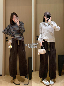 日杂灯芯绒裤!拼接花苞腰阔腿裤斜线插袋微弧九分休闲裤