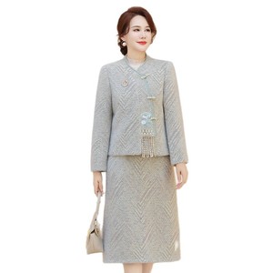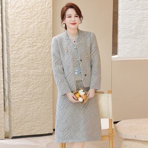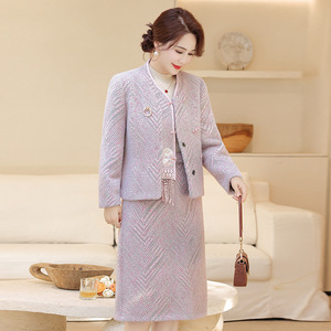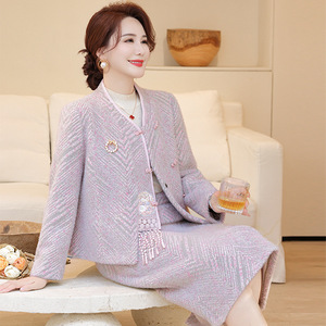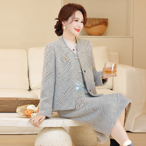 妈妈秋装套装新中式国风毛呢两件套2025新款中老年秋冬仿水貂套裙