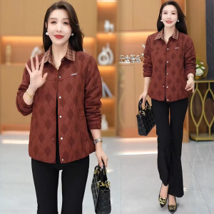 时尚菱格短款外套女2025秋季新款洋气显瘦小个子翻领百搭夹克上衣