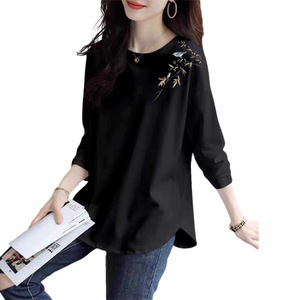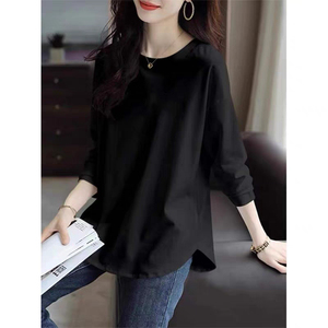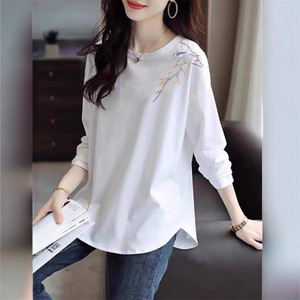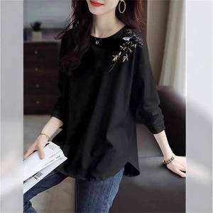 秋季大码女装300斤春秋中长款长袖T恤胖mm宽松显瘦新中式打底衫潮