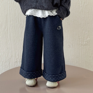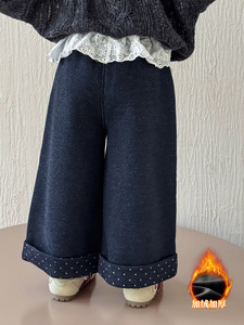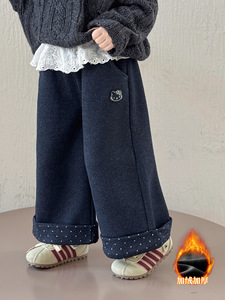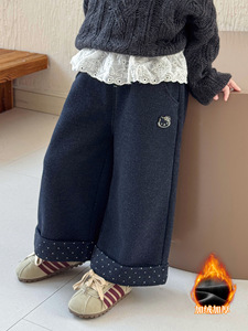 女童加绒裤子秋冬季2025新款儿童冬装直筒裤女宝宝加厚休闲阔腿裤