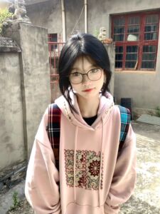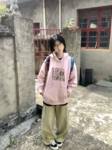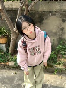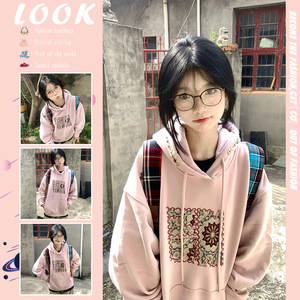 美式万花筒贴布刺绣连帽卫衣女春秋季新款设计感国潮牌宽松上衣服