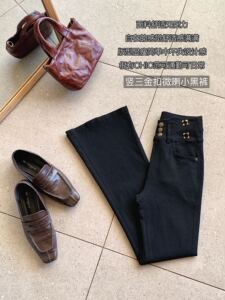 MANUVIVI摩女薇薇竖三金扣微喇小黑裤