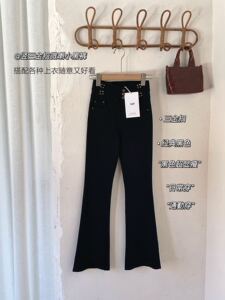 MANUVIVI摩女薇薇竖三金扣微喇小黑裤女秋季高腰显瘦百搭弹力遮肉
