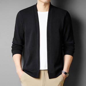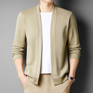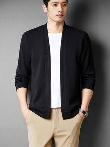 秋季男款开衫中青年潮流纯色针织纯色休闲修身长袖男外套秋装男