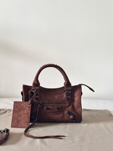 B家高版本铆钉机车包 复古时尚磨砂皮托特包潮流百搭真皮手提包女