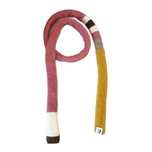 细窄长条围巾女春秋小众设计感条纹拼色复古百搭腊肠针织毛线围脖
