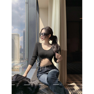 昕可达 小众下摆不规则设计长袖打底衫秋季新款修身亲肤内搭上衣