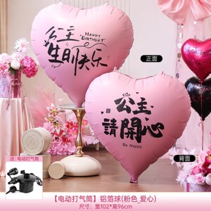 【玫红-爱心】公主生日快乐+公主请开心(送电动打气筒)