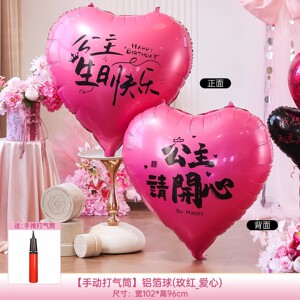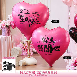 【玫红-爱心】公主生日快乐+公主请开心(送手动打气筒)