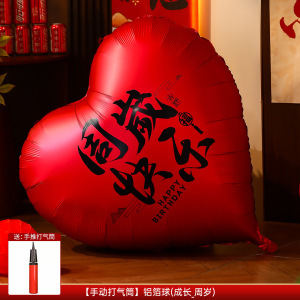 【大红】(快乐-周岁)爱心铝膜气球(送手动打气筒)