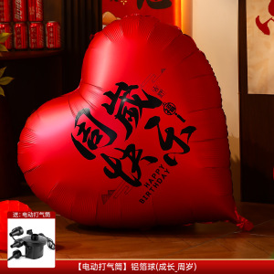 【大红】(快乐-周岁)爱心铝膜气球(送电动打气筒)