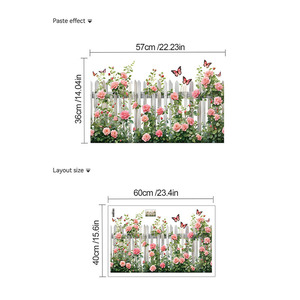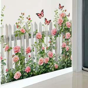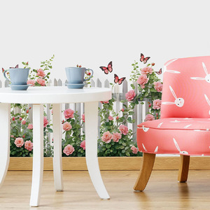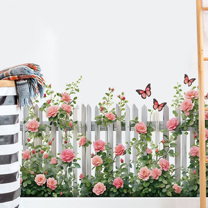 跨境粉色花栅栏墙贴纸客厅玄关装饰PVC壁纸卧室自粘家居装饰墙贴