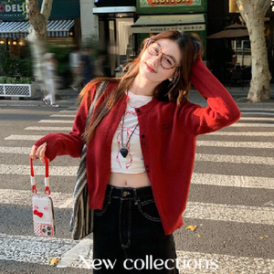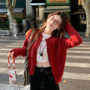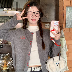 韩系字母刺绣彩扣针织开衫女2025早春新款宽松百搭显瘦毛衣外套潮