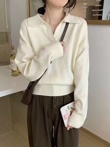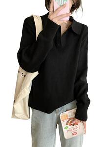2025气质风休闲显瘦宽松翻领长袖针织毛衣女秋季百搭减龄打底上衣