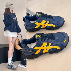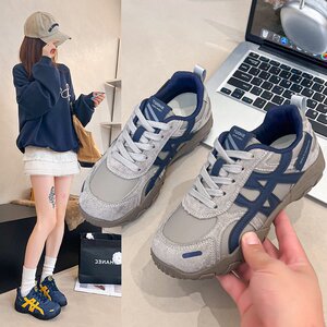 2025秋季新款皮面登山鞋韩版系带软底运动女鞋百搭皮面跑步鞋