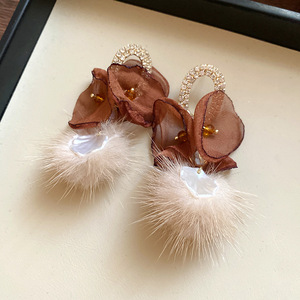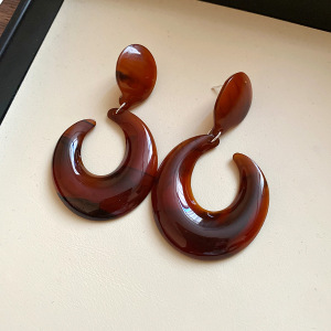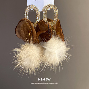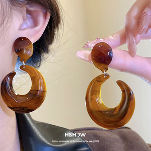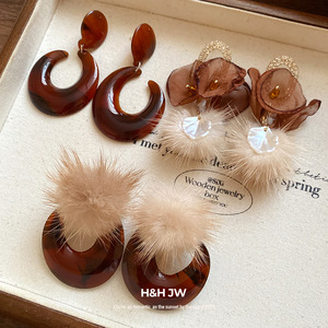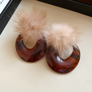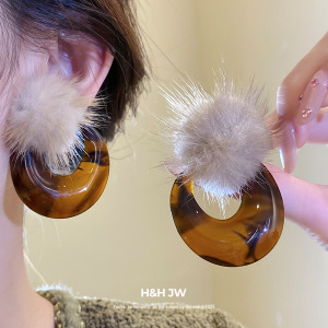 银针毛球树脂圆形镂空吊坠耳环美拉德复古气质耳钉小众高级感耳饰